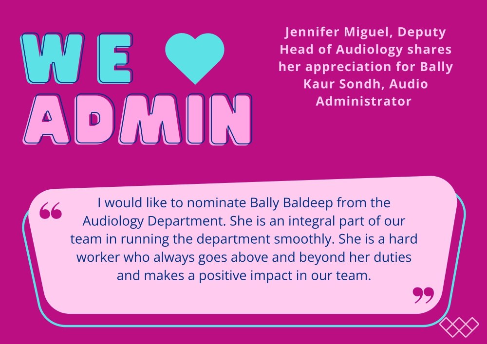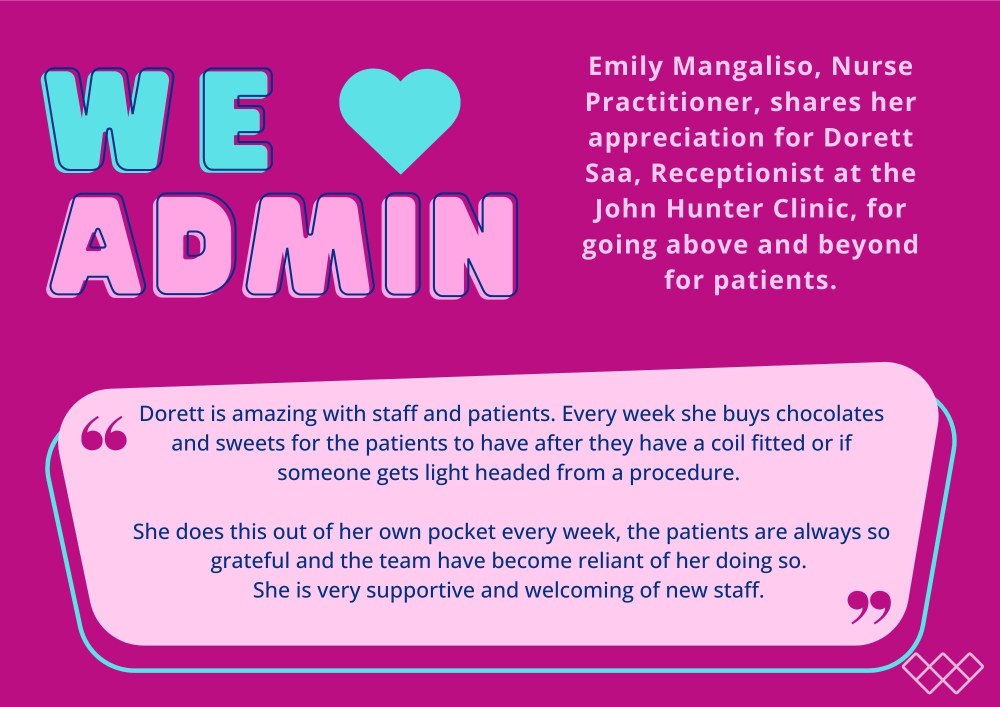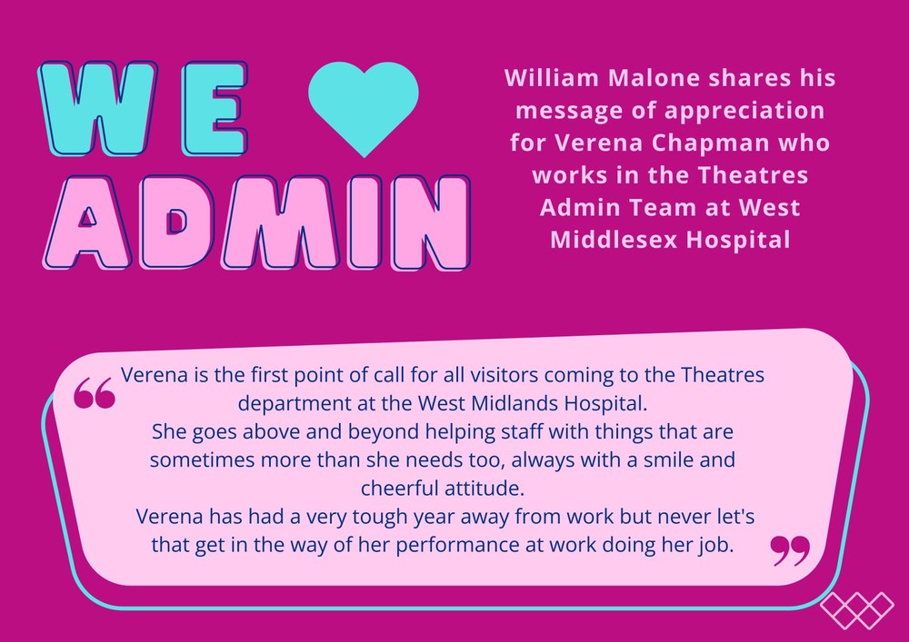 We are celebrating our admin and clerical colleagues who help keep our services running.
