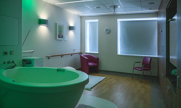 The birth centre comprises six rooms—four with birthing pools—with mood lighting that you can control during birth.