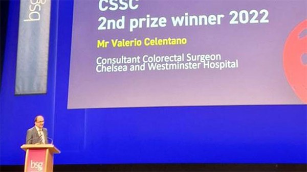 Consultant surgeon Mr Valerio Celentano received the Service Development Award from the British Society of Gastroenterology during the BSG annual conference in Birmingham in 2022. This is a prestigious award that acknowledges the high volume and high-quality care delivered by our Inflammatory Bowel Disease (IBD) team. The award recognises the multidisciplinary patient-centred approach to ileoanal pouch surgery which, at our Trust, involves collaboration among colorectal surgeons, gastroenterologists, stoma nurses, dietitians, radiologists, IBD nurses and paediatric surgeons. Our surgical team was awarded in Birmingham for the excellent outcomes of our high-volume service.