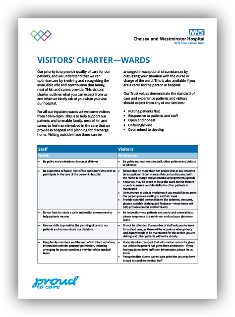 Vistors charter—adult wards