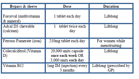After surgery reduced food intake may increase your risk of vitamin and mineral deficiencies. Daily, life-long vitamin and mineral supplementation is essential.