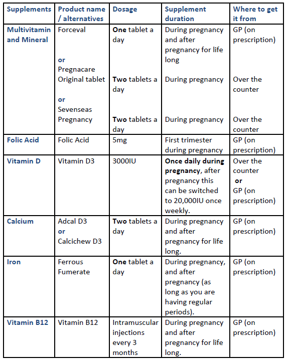 - You are not required to take additional vitamins and minerals other than the usual post-operative recommendations summarised above. If you do not take your vitamins and minerals routinely, this may cause vitamin and mineral deficiencies that may affect the quality of your breast milk.