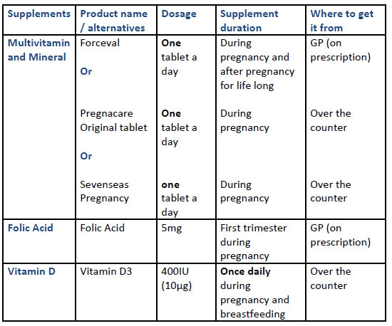 Vitamin and mineral supplementations required during pregnancy following gastric band