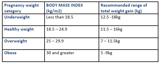 Expected weight gain during pregnancy