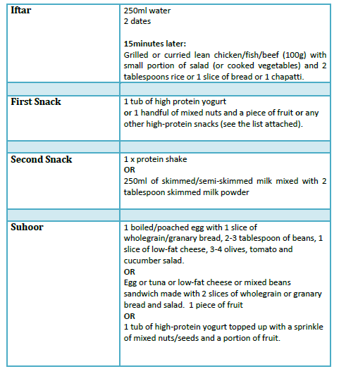 Example Meal Plan for Ramadan