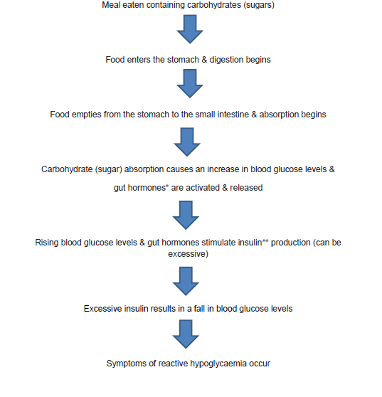 It is the result of the anatomical alterations to your gut and changes to gut hormones that occur after bariatric surgery and affect the way carbohydrates (sugars) are digested and absorbed. Reactive hypoglycaemia is closely linked to your diet and can often be managed with dietary changes.