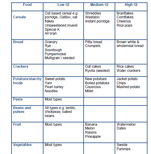 Carbohydrates are absorbed at different rates. Low Glycaemic Index (LGI) carbohydrates are digested and absorbed more slowly than High Glycaemic Index foods. Including a small amount of LGI carbohydrates at your meals may slow down the rise in blood glucose levels (after eating) and keep your blood glucose levels more stable afterwards. This may help to prevent (or reduce) symptoms of reactive hypoglycaemia. At the back of this booklet there is a list of some common LGI carbohydrates.