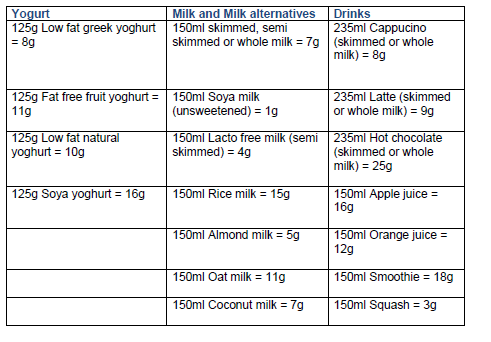 Avoid sugary drinks such as fruit juice, fizzy drinks, smoothies and milk shakes as these drinks are a source of carbohydrates (in liquid form) and are easily absorbed by the body. Sugary drinks can cause a rapid increase in blood glucose levels, as well as insulin and increase the risk of reactive hypoglycaemia. Suitable alternatives include; water, sugar free squash, tea, and coffee (with sweetener).