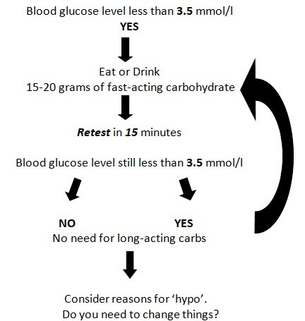 Hypo treatment flow chart. Always treat hypos immediately
