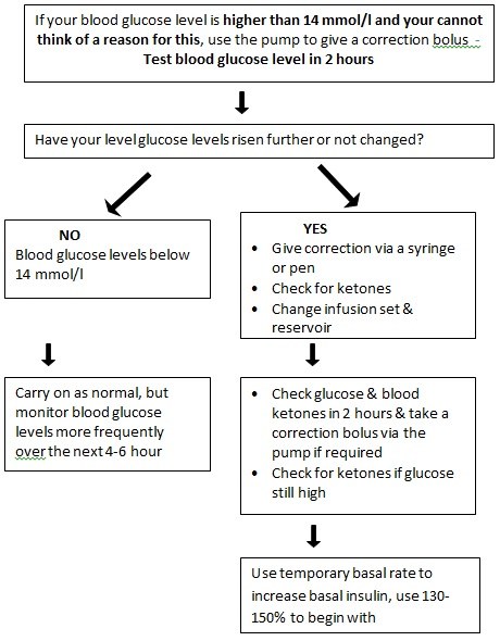 If your insulin pump stops working for any reason it is essential that you have a backup plan. As only quick acting insulin is in your pump, without this, your levels can start to rise quickly, and ketones can start to form within 4-5 hours.