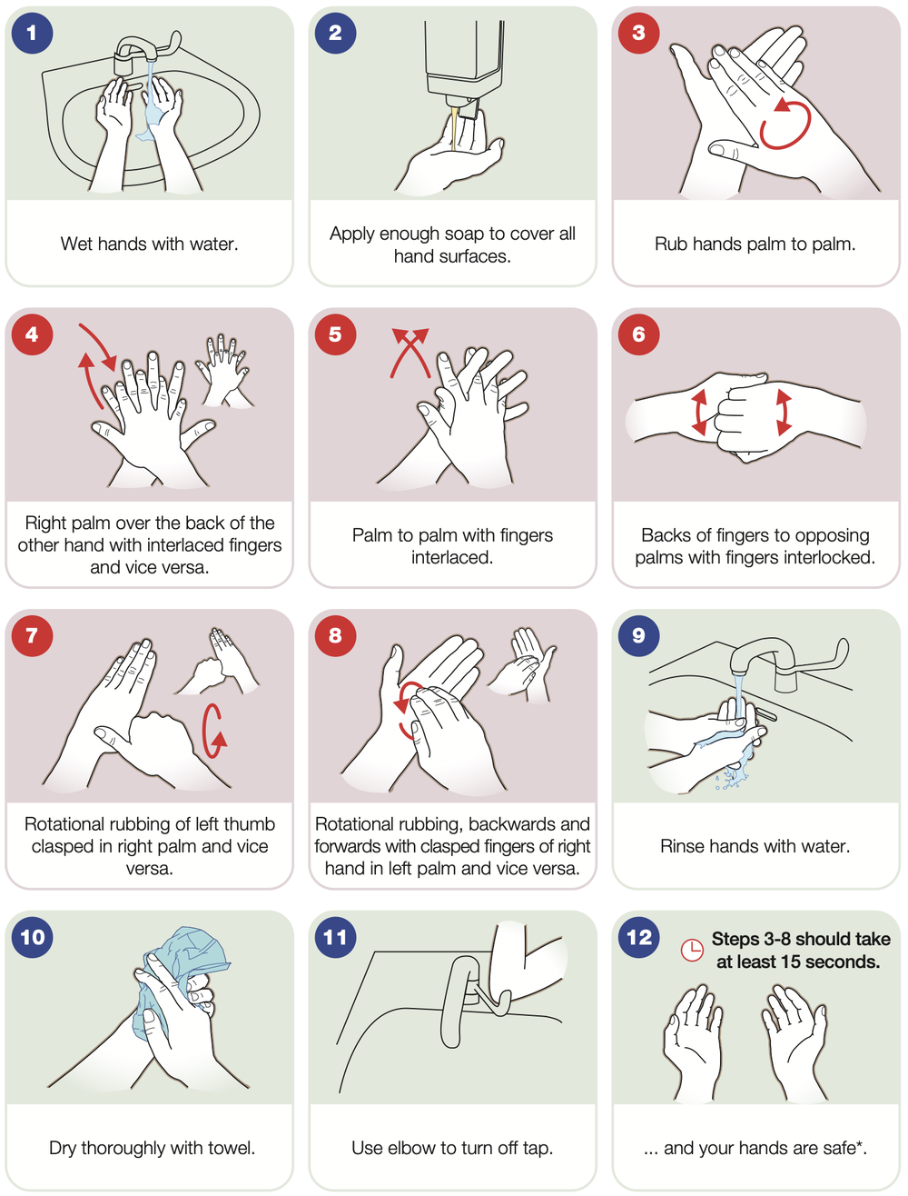 Hand hygiene is essential in preventing the spread of C. diff. Staff and visitors should always wash their hands with soap and water after coming into contact with patients or their surroundings. Alcohol-based hand rub is not effective against C. diff spores.