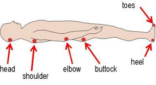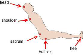 Other sites are shown below. Pressure ulcers can also develop under equipment such as masks or tubing, so it is important to check these areas too.